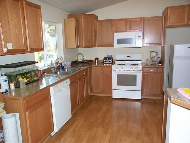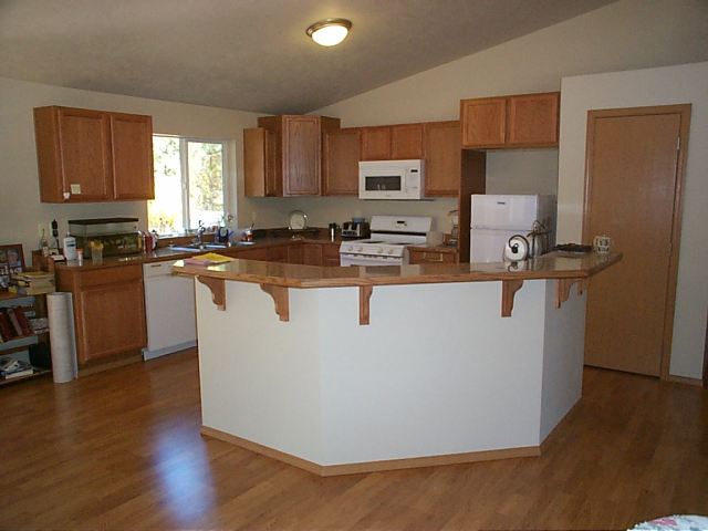 The home is offered with all appliances including a propane refrigerator, propane stove and electric dishwasher. The kitchen has oak fronted cabinets with Crater Lake style laminate flooring that extends into the dining room and pantry.